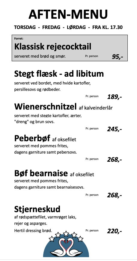 Aften menu